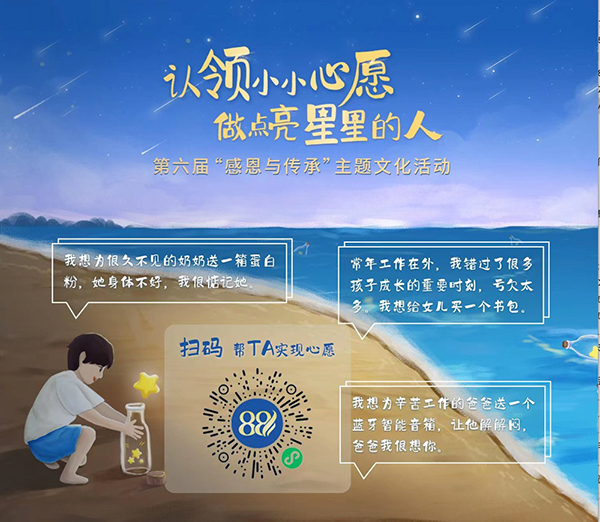 8月8日當(dāng)天,“心愿漂流瓶”通過小程序正式公布,很快獲得了大家的積極響應(yīng):集團(tuán)多位高管帶頭支持,機關(guān)員工、項目經(jīng)理以及下屬單位也紛紛行動,通過個人或集體的名義獻(xiàn)上愛心。